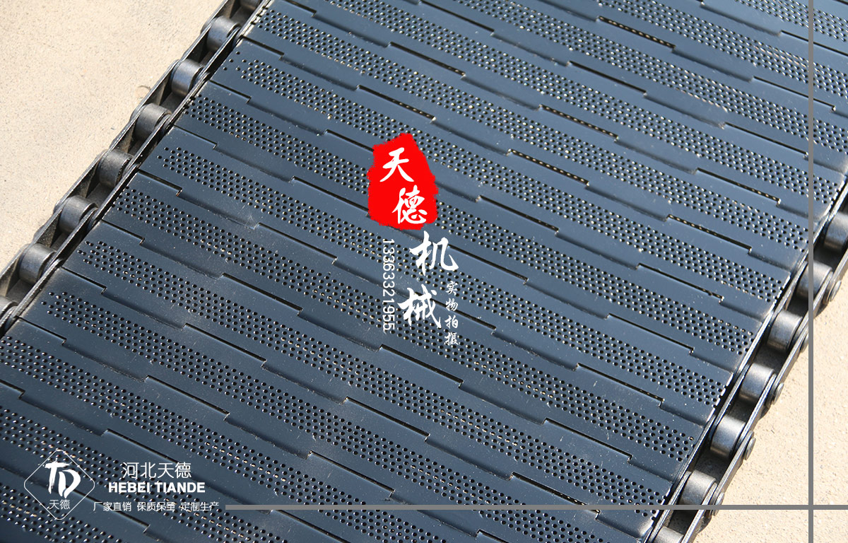 【鏈板輸送帶特點(diǎn)】:1.0到6.0毫米厚,邊緣鏈條,節(jié)距從25.4毫米到150毫米,碳鋼或者不銹鋼(不銹鋼限厚5毫米),不銹鋼或者鑄鐵鏈輪,可定制邊緣擋板或者橫向擋板。有平鏈板,沖孔鏈板,防滑鏈板,帶擋板鏈板。