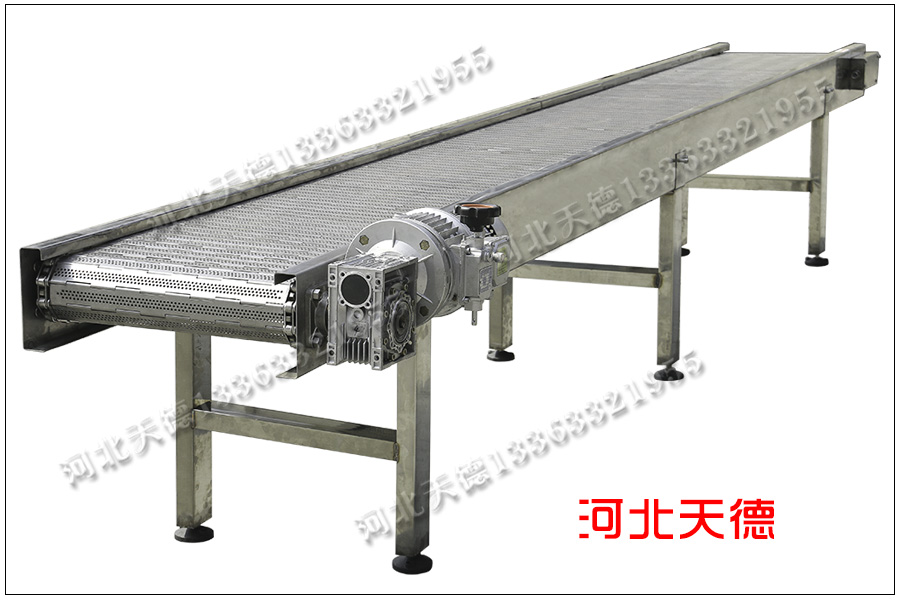 江蘇鹽城孫總定制的鏈板輸送機,采用不銹鋼304材質,用來輸送餐具到下一道工序進行清洗,長期在水利浸泡使用,為了使用時間長久所以孫總定制的整機為不銹鋼304材質。